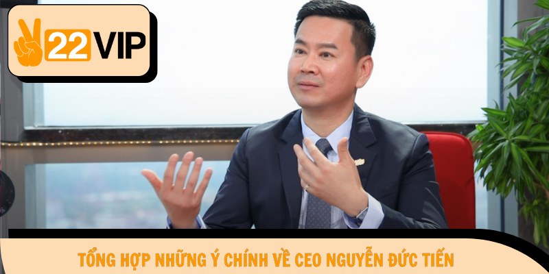 CEO Nguyễn Đức Tiến là doanh nhân tài năng với tầm nhìn chiến lược đã giúp thương hiệu 22Vip khẳng định vị thế trên thị trường Việt Nam. Nền tảng nổi bật với hệ thống sản phẩm chất lượng cao, thu hút đông đảo hội viên tham gia. Môi trường cá cược minh bạch, công bằng là minh chứng cho sự phát triển bền vững.